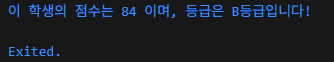 - 출력 형태 : 이 학생의 점수는 [점수] 이며, 등급은 [등급]입니다!